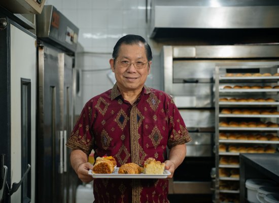 Di balik pintu kaca AJ Bakery, tawa Om Endra merangkum perjalanan dari pabrik biskuit di Medan hingga menjadi bagian dari kehidupan lintas generasi di Kelapa Gading.